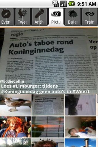 Het omschrijven van het bomvolle Koninginnedag 2012 is een flinke opgave, maar laten we een tipje van de koninklijke sluier oplichten. Wat dacht je bijvoorbeeld van twitterstreams over Koninginnedag 2012, het delen en uploaden van foto's en een regenboog aan extra info (treinen, buien, radio)? Koninginnedag 2012 gebruik je dankzij de vele mini-apps naar eigen smaak. Het enige euvel dat we constateerden was het ontbreken van Nederlands in de interface. Dat lijkt ons niet helemaal koning(in)sgezind.